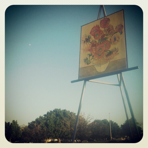 When I walked past it last night I did not notice it, so the gigantesque absurdity greated me in the morning with a sunflower smile. Van Gogh painting, the largest painting in the world on easel is in Emerald. As I thought imagination can’t go queerer, I got the msg. On top of it, while men are in mines, girls have fitness training undervthe painting. (Taken with Instagram at Emerald)